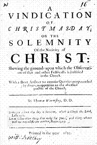 Christmas Past Puritan England 1641-1660 A Vindication of Christmas Day or the Solemnity of the Nativity of Christ London 1659 Read |